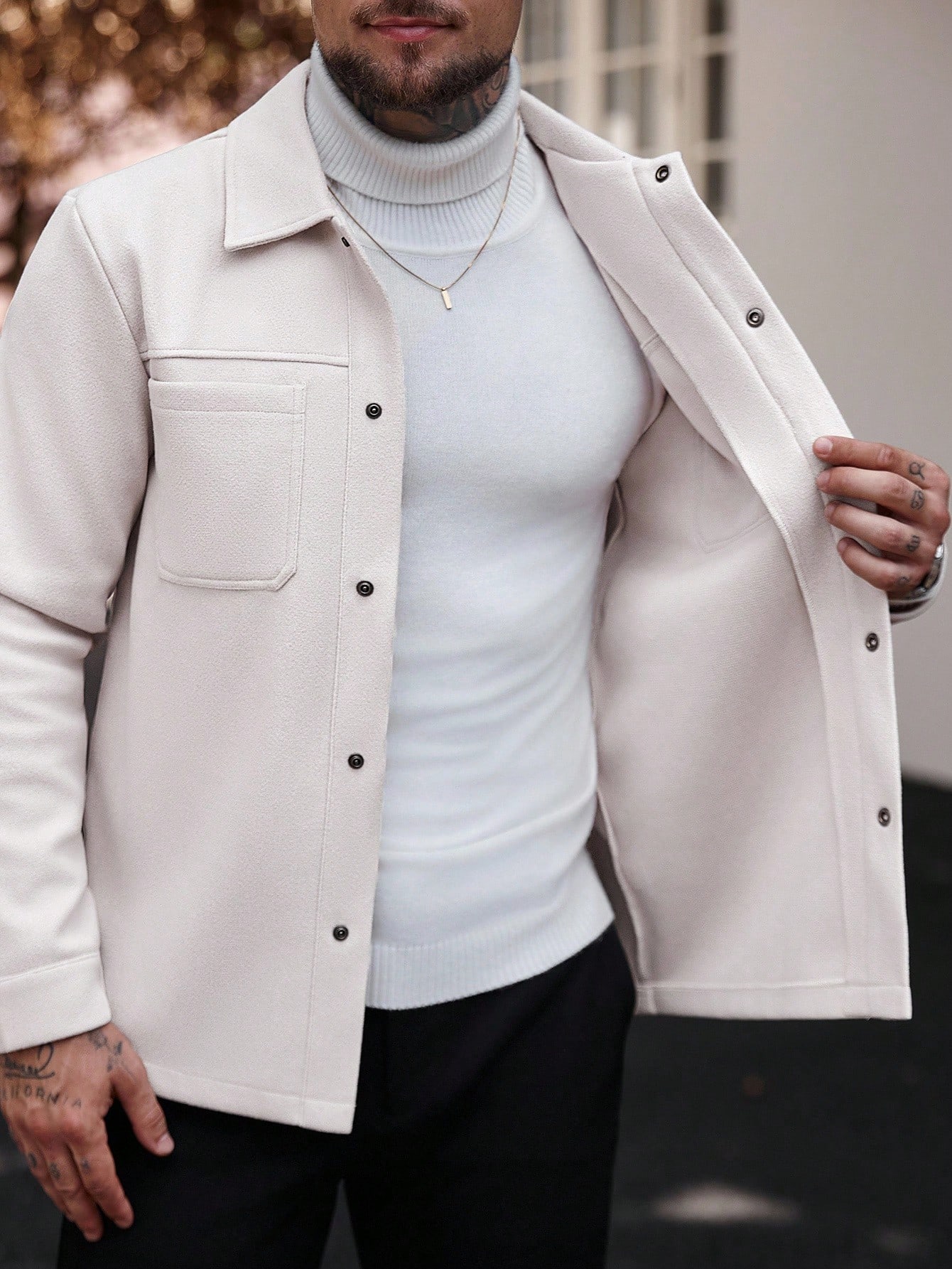 πMan finity Casual Cool Men Solid Color Casual Long Sleeve Overcoat, Suitable For Autumn And Winter Men Cream Button Up Overcoat 900+ sold